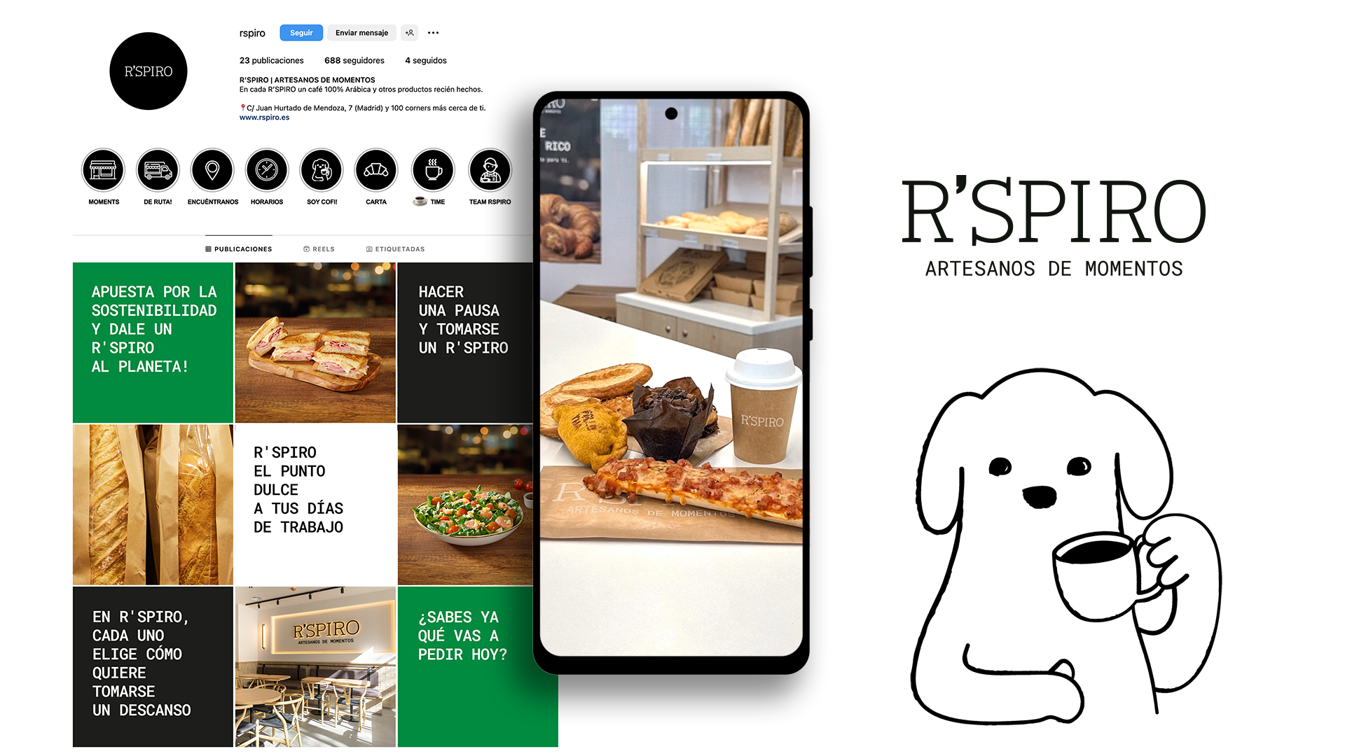 El rebranding de su marca de cafeterías en las estaciones de servicio nos trajo otra nueva marca: R'spiro. Para ella hubo que crear sus propias redes, trabajando en la mejor manera de adecuar su identidad gráfica al entorno social. Todo un reto en una categoría muy sobresaturada de contenido como es la restauración.