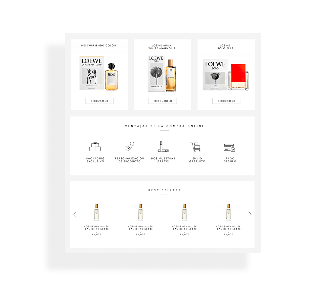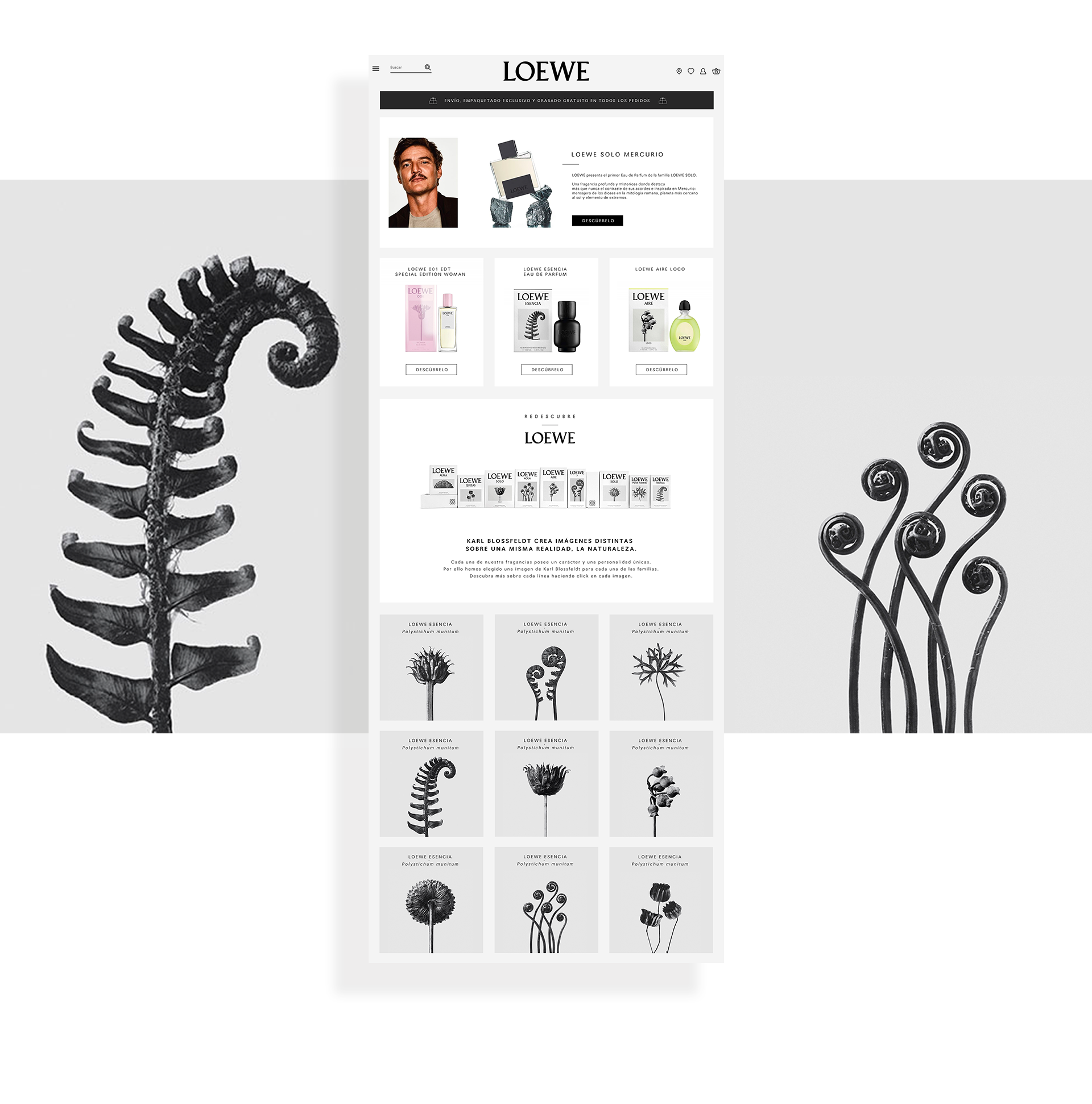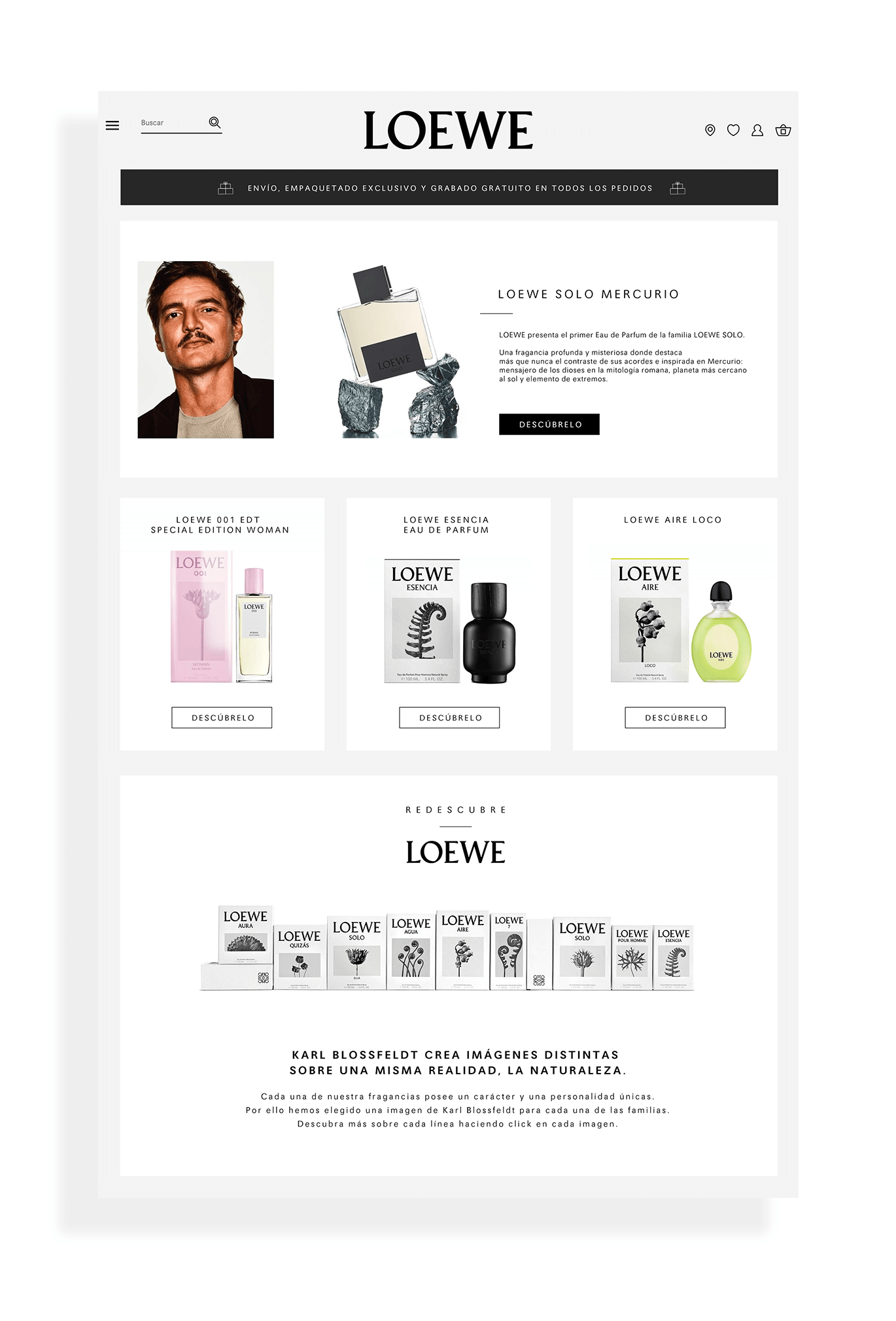Loewe quería mejorar su tienda online de perfumes, por lo que hicimos un trabajo de UX y UI muy centrado en mantener el espíritu de la marca y crear una mayor usabilidad de la web.